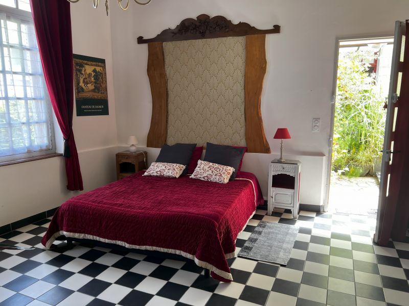 Notre chambre Les Lys vous plongera le temps d'un séjour dans une ambiance de chateau avec sa cheminée en pierres de tuffeau, ses hautes fenêtres, et ses nombreuses poutres. C'est une pièce spacieuse de 40m2, dotée d'un coin salon et d'une grande salle d'eau. Les toilettes sont privatives. Cette chambre peut accueillir 2 personnes.Le petit-déjeuner est inclus. Elle est en rez de chaussée avec un accès indépendant.